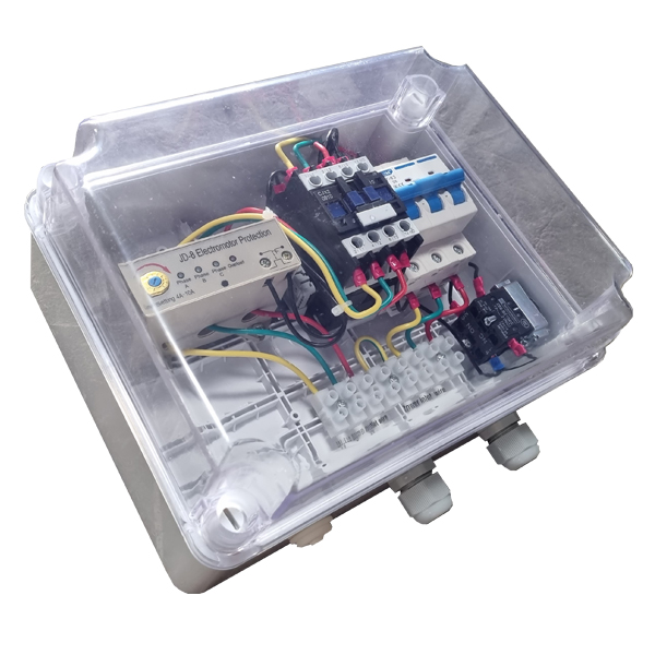 Manual control box for 380V 0.75Kw 1HP submersible borehole pump motors. With phase protection Over/Under Voltage Protection Over Current Protection